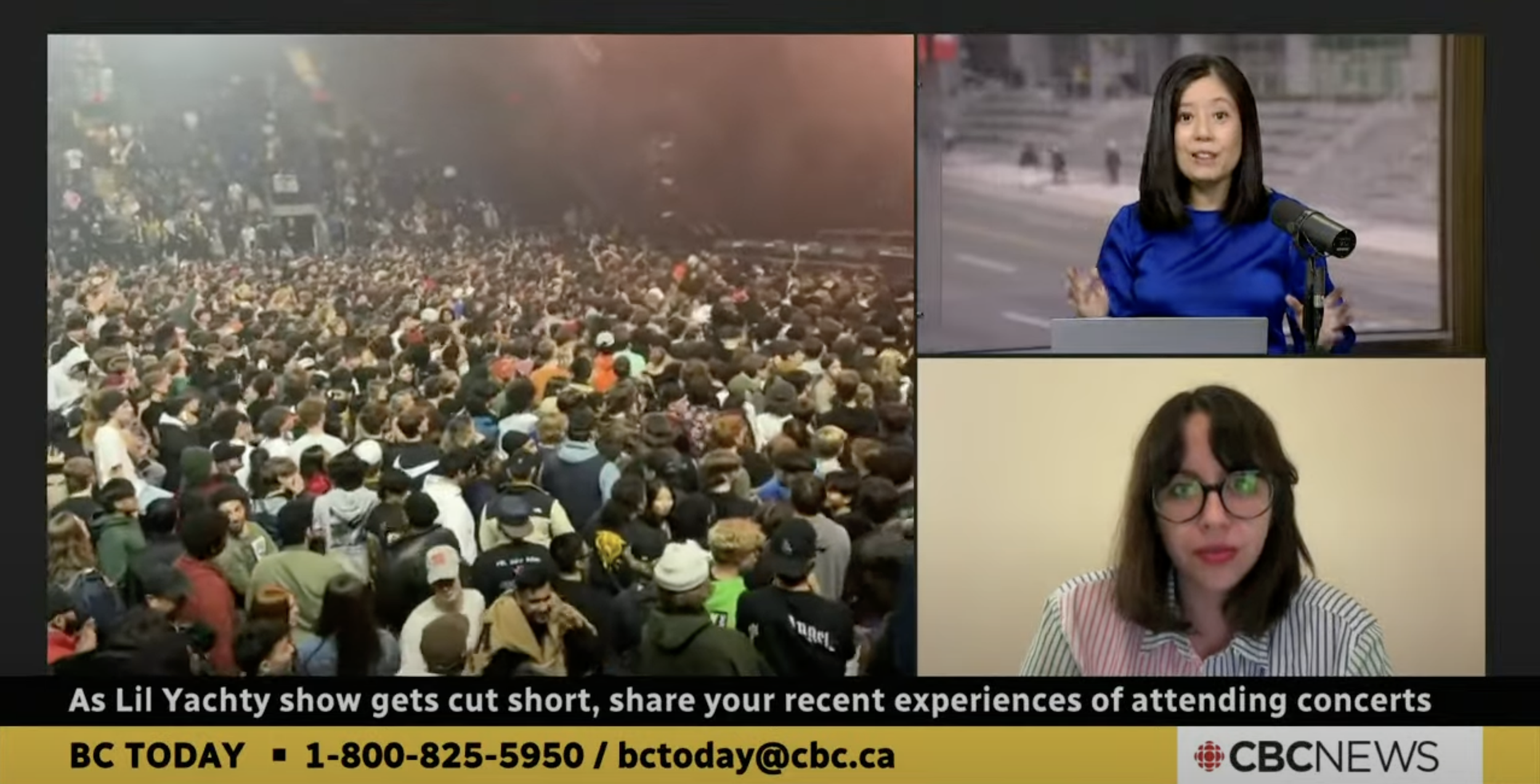 Speaking with CBC as a pop culture expert on concert safety after Lil Yachty's Vancouver concert was cut short after attendees surged onto floor.